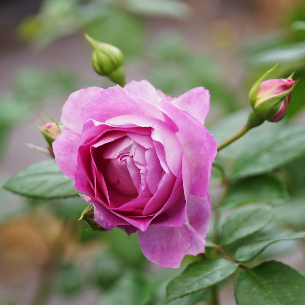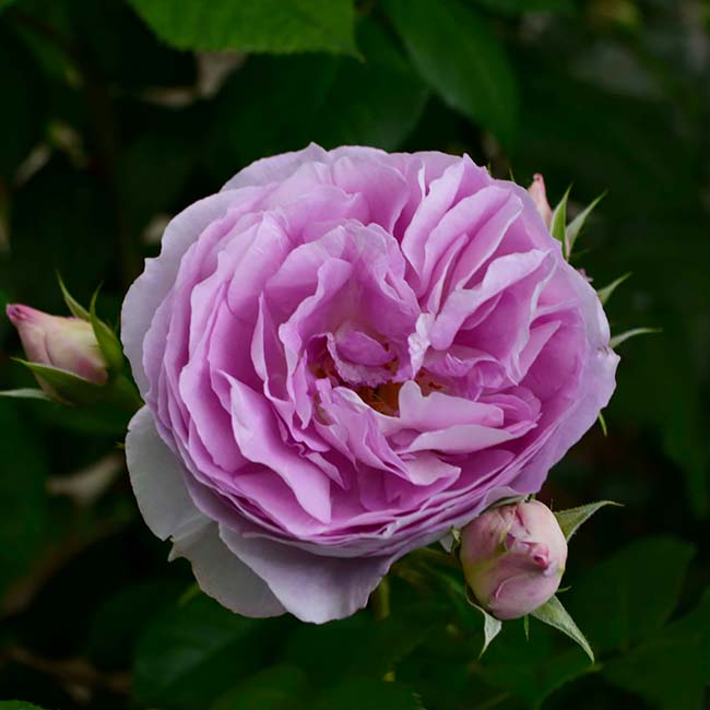 透明感のある柔らかな色合いの花は心地よい香りを放ちます。花弁の中心が紫がかったピンクで、外弁につれて薄くなり幻想的な雰囲気の花色です。まっすぐに伸びる樹形で、小型のつるバラとしても楽しむことができます。照り葉なのでうどんこ病にも黒星病にも強いです。花名はドイツ語で「宝石」の意味です。