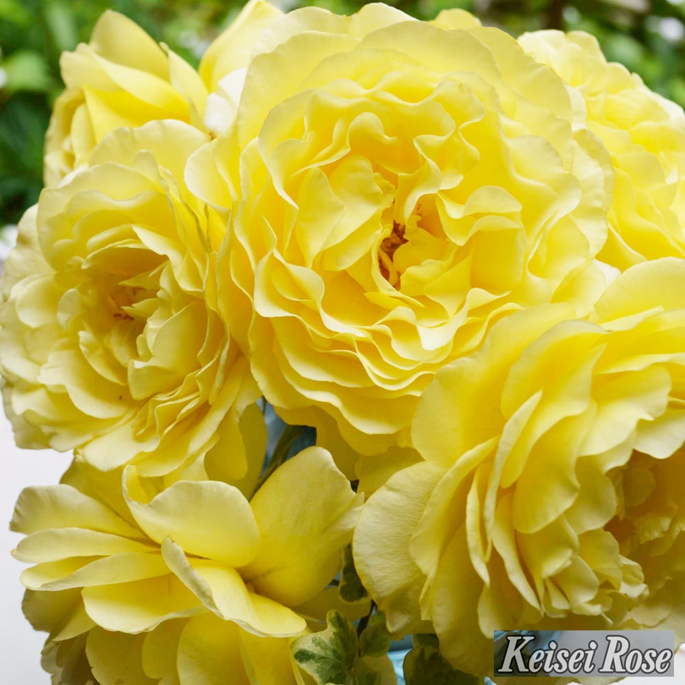 | レモンイエロー・大輪咲き(9cm位)・波状弁高芯~ロゼット咲(花弁数:70~100枚) |