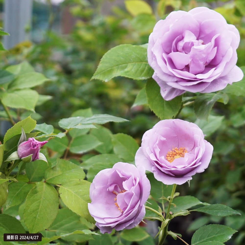 独特の青みを帯びた淡い藤紫色の奥ゆかしい雰囲気です。四季を通じて安定した丸いカップ咲きで、花弁数:25~30枚位で花径7~8cm位。特に春は株を覆うように咲き、あたり一面が藤青の波に覆われるような不思議な空間を作ります。香りは強くないけれど、かぐわしい香りです。