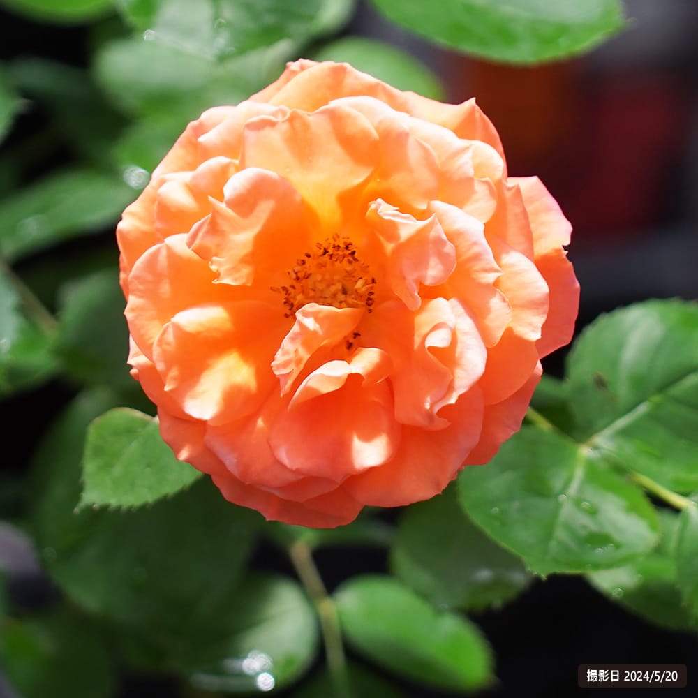 何度も繰り返し株全体が満開を迎える、まさしくフロリバンダ。鮮やかなオレンジの中輪花が賑やかに咲き、元気で楽しげな雰囲気です。夏も元気に花が咲き続けます。多花性な上に実がつきにくく、セルフクリーンで景観を保ちます。株はコンパクトにまとまり大きくならず、一株でも華やかになるので、小さなスペースやコンテナ栽培に向きます。