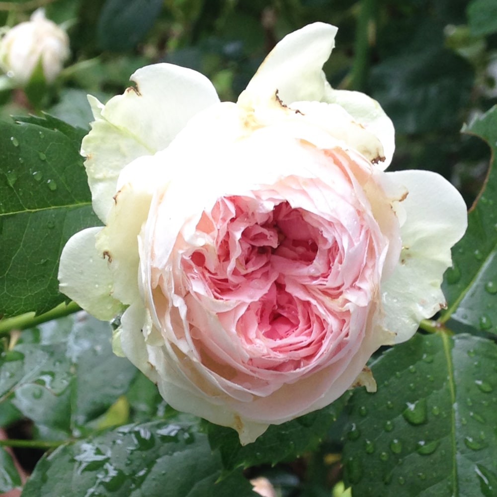 | 緑を帯びた白で中心が淡いピンク・小輪咲き(5cm位)・カップ咲~ロゼット咲 |