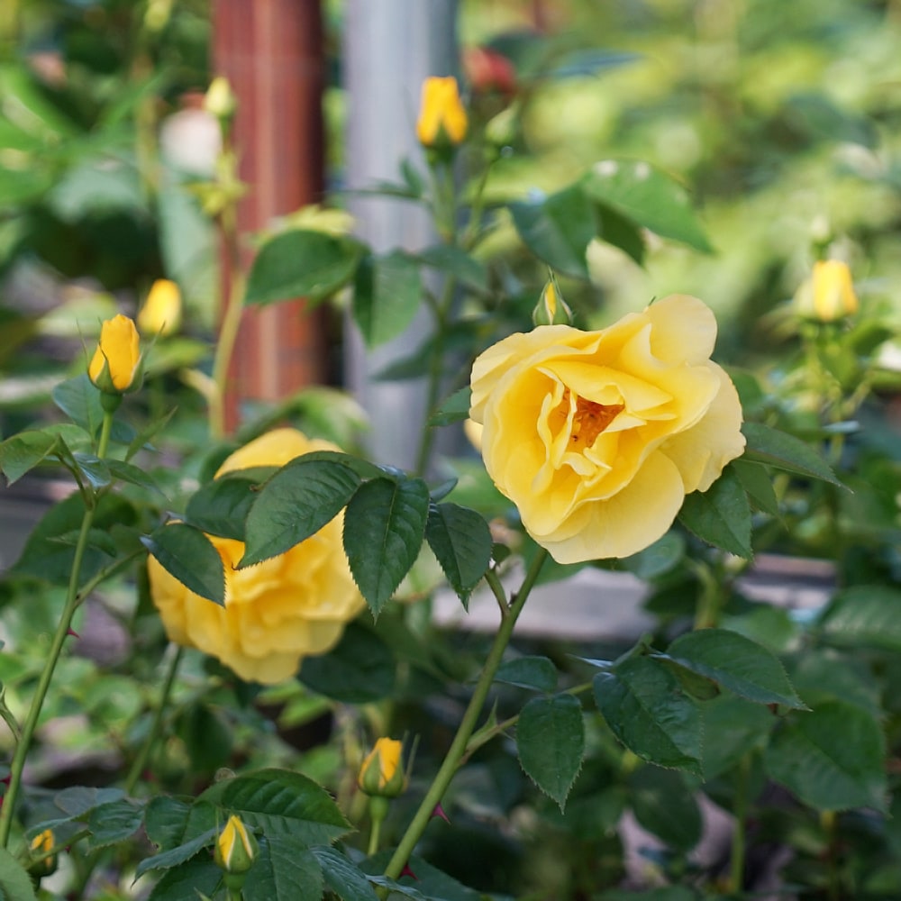 近年の夏の暑さはバラにとっても大変な負担です。直射日光が当たらないように工夫するなど、バラが涼しく過ごせるような対策をしてあげましょう。葉っぱが黄色くなり始めたら夏バテのサインです。