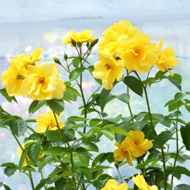 レモンフィズは褪色しにくい黄色の花で、咲きながら次の枝を伸ばします。香りはフレッシュなスパイシーな香り。青リンゴのような実が付きやすく、実をつけたままでも咲きますが、切ったほうが良く咲きます。