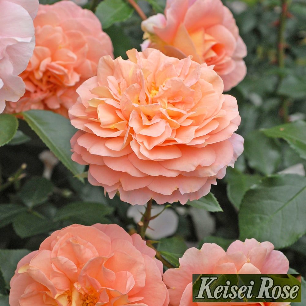 杏子からピンクへと変化する花色も楽しめますが、ロマンティックな花形と甘い香りを持つとっても素敵な品種です。新芽が絶え間なく吹き出し、シュートの発声も活発。繰り返し咲き続けます。樹形もまとまりが良く、大鉢仕立てや花壇におすすめ。