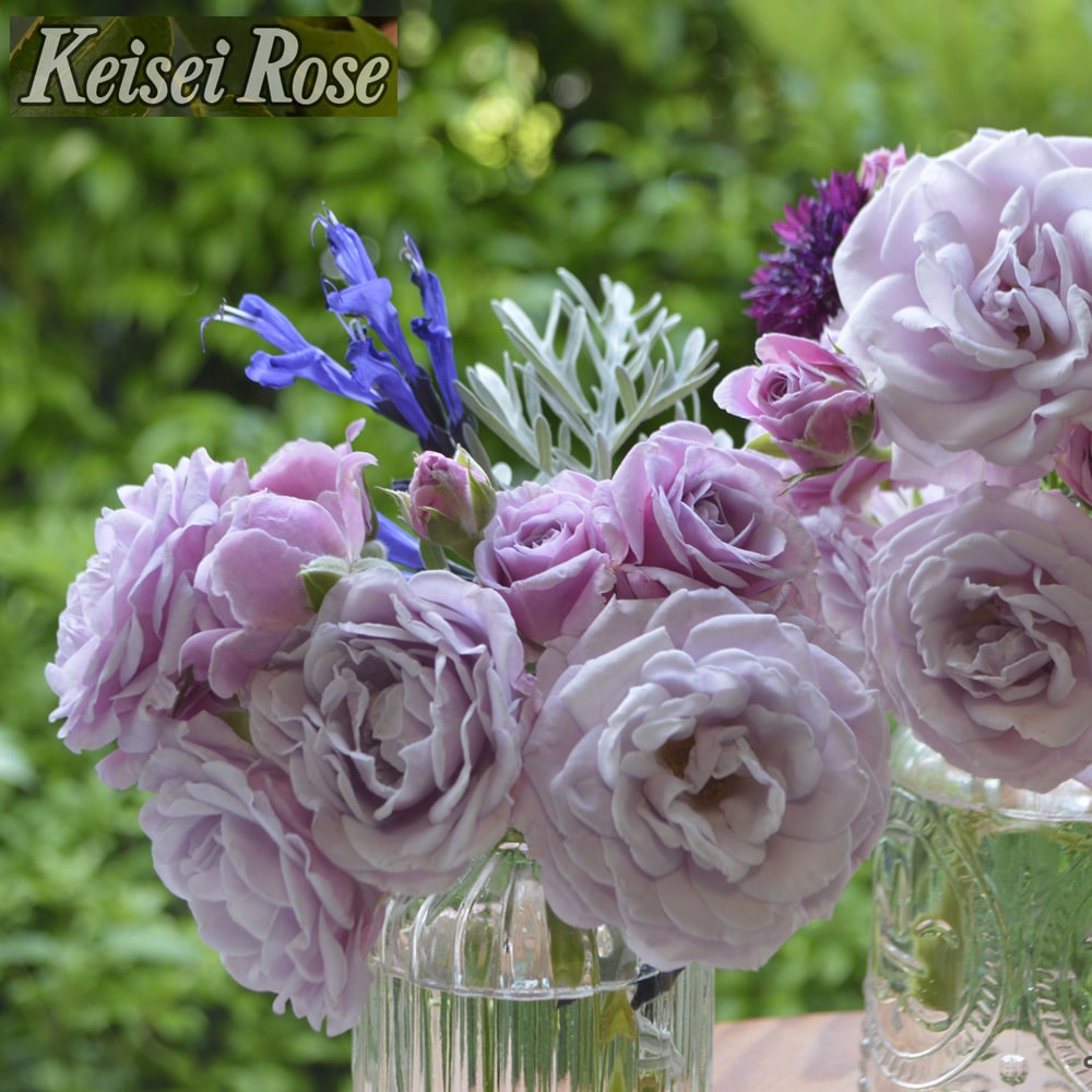 2021年発表の新品種。株はコンパクトで花付きよく、春~秋までよく咲き続けます。花もちもよいです。花弁に表情がある小さめの花ですが、株の上に藤色の花束ができます。