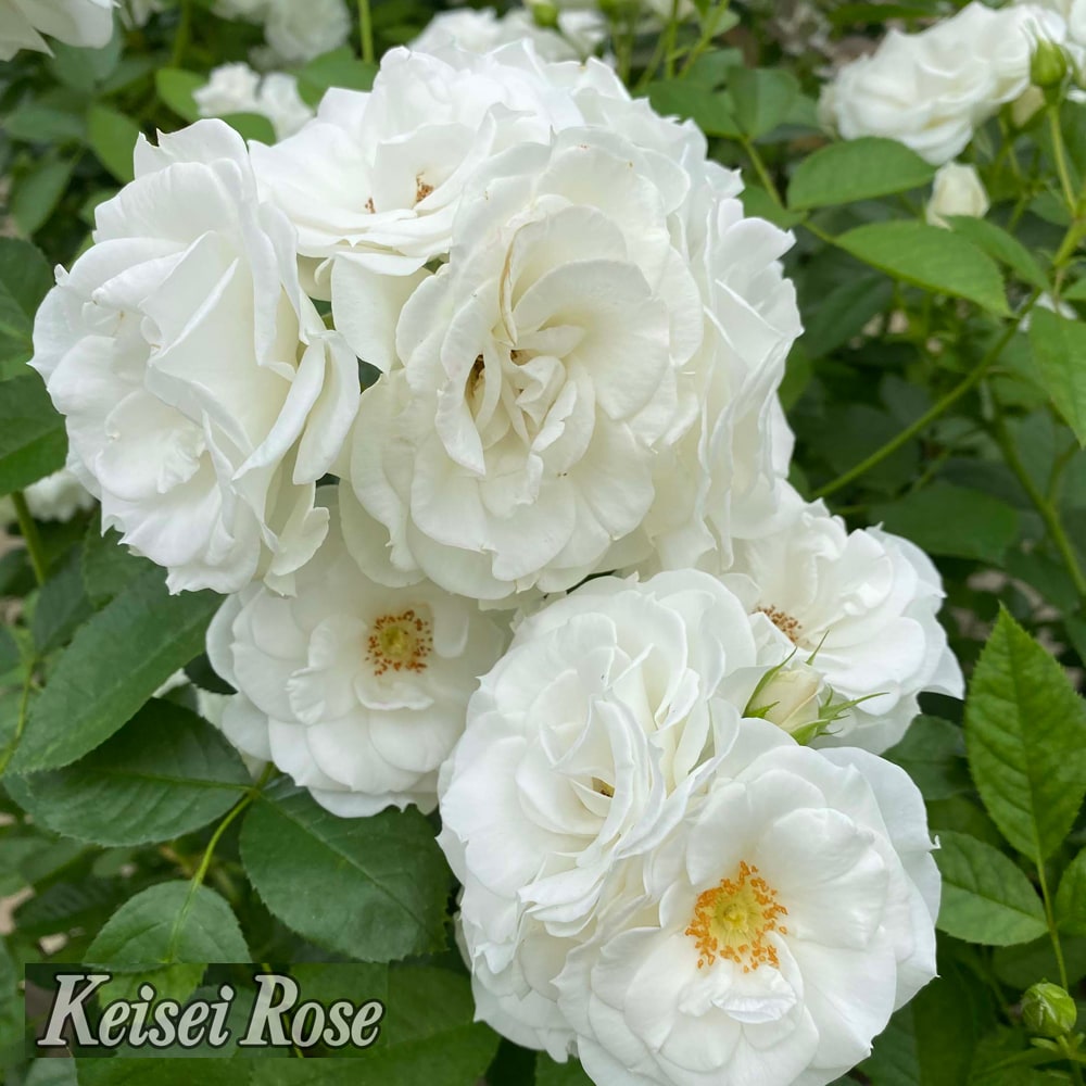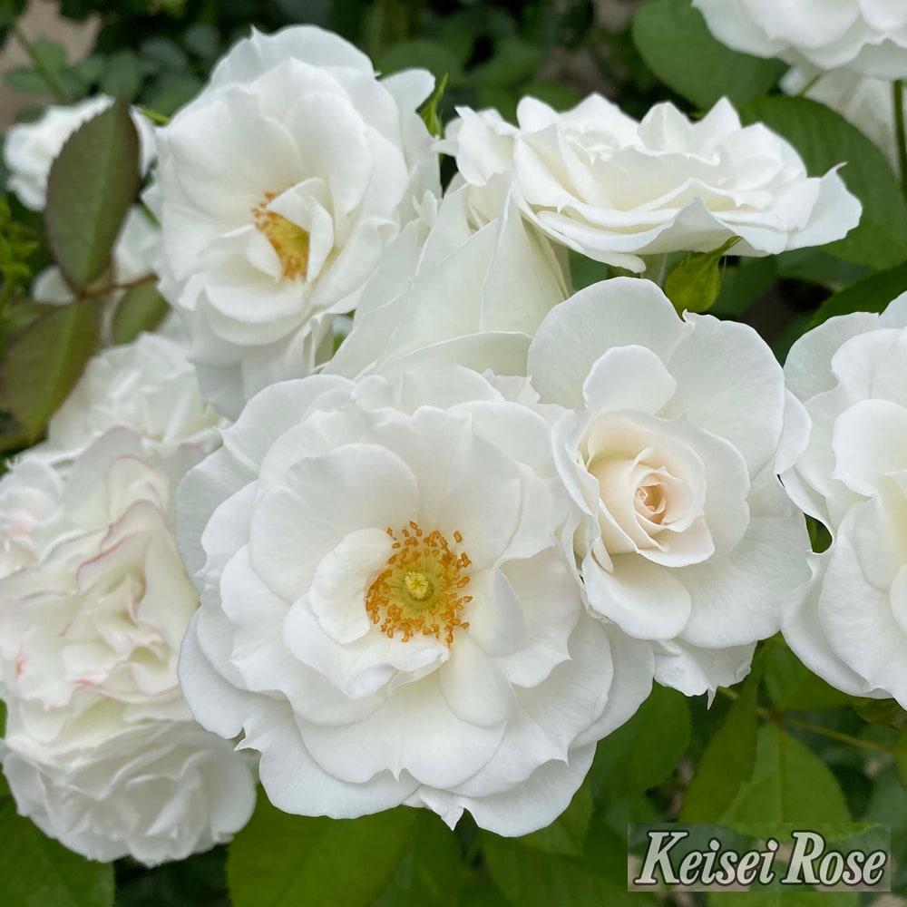 世界中で銘花として愛されている「アイスバーグ」の矮性品種であることから「ベビーアイスバーグ」の名が付けられました。年間を通して花つきが非常によく、房状にたくさんの花を咲かせます。耐病性も強く、健康的な綺麗な葉が茂ります。コンパクトに育つため、鉢植えにおすすめするバラです!
