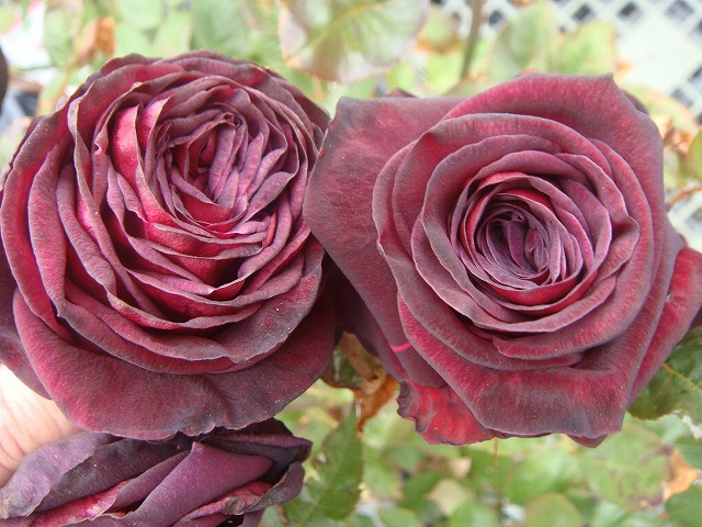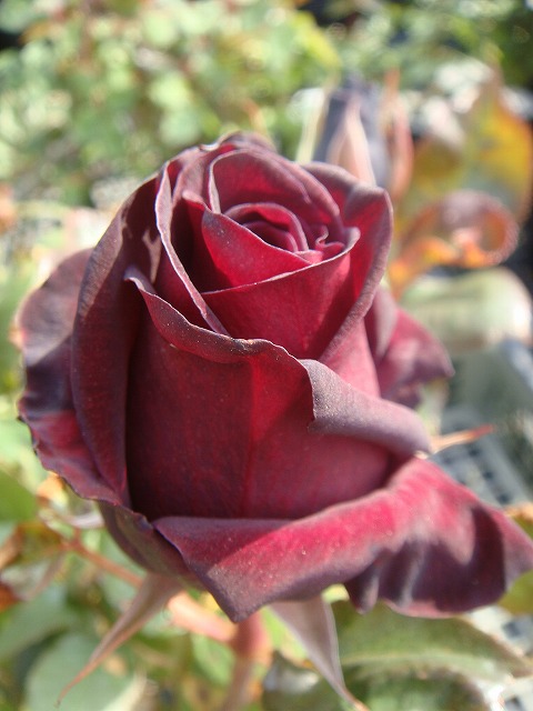| 黒赤色・大輪咲き(9cm位)・半剣弁高芯咲き (花弁数 35~40枚) |