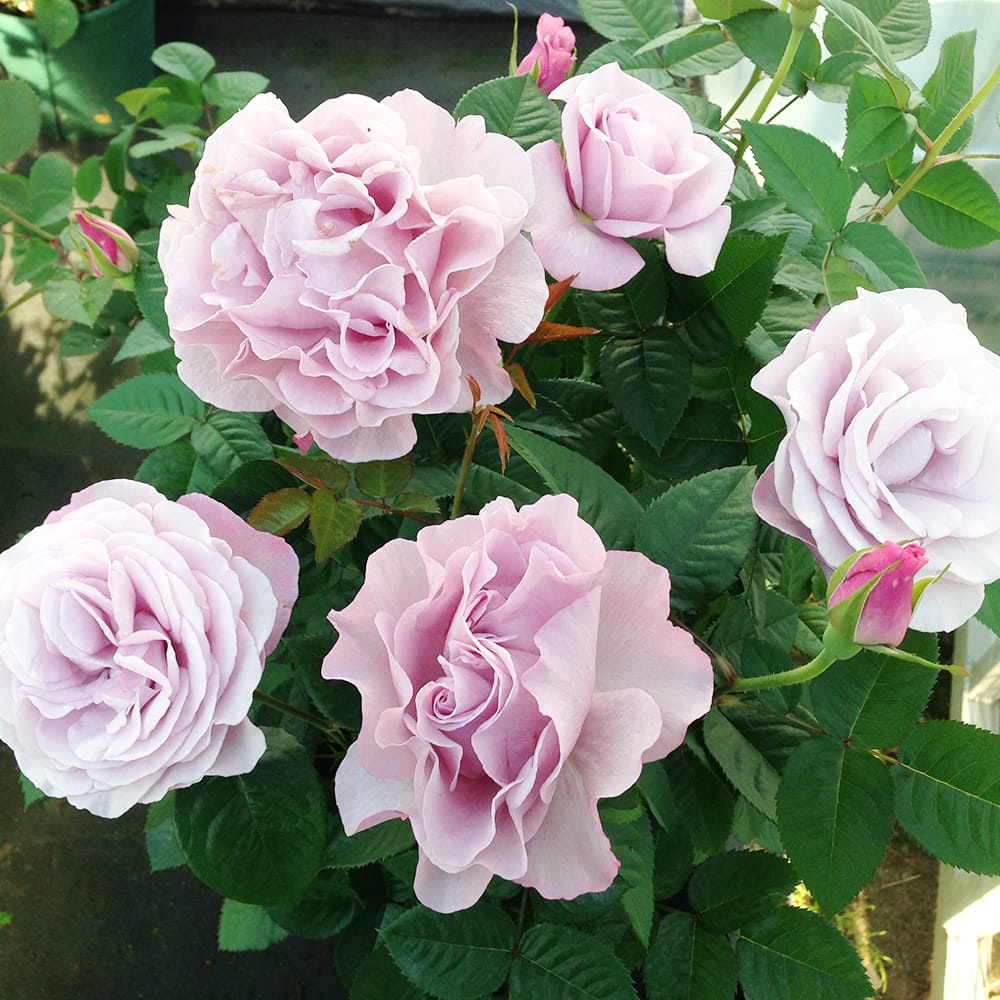 永遠を意味する「エターナル」は、波状剣弁咲きの上品で美しい淡いパープルの大輪花が魅力。また、花は房咲きになりたくさんの花を咲かせます。80cm程のコンパクトな木立性で、鉢植え栽培や地植えでも楽しめます。