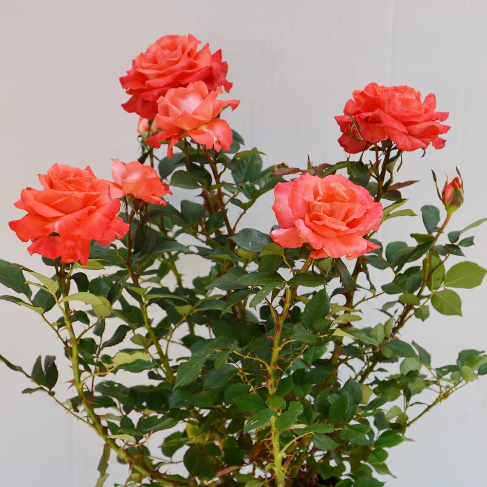 花の付き方が不安定で、切れば咲くHTローズと比べてちょっと気まぐれな系統です。大きなものは樹形の管理が難しくなるため、初心者はコンパクトに木立に仕上げるのがおすすめ。