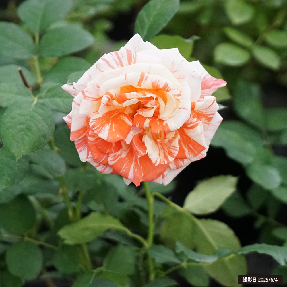 | オレンジに白の絞り・大輪咲き(12cm位)・剣弁高芯咲き |