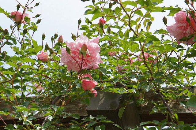 花付きが良く伸長力のあるしなやかな枝は誘引しやすく強健で育てやすいです。小さめの濃い緑葉は病気に強く、耐寒性にも優れ、北側や半日蔭でも丈夫に育ちます。鉢植えでは少し大きめの深めの鉢に植え、トレリスやカーポートに誘引しても素敵です。