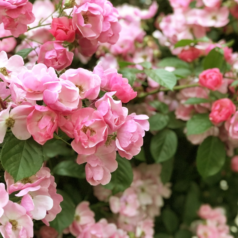 「ハトヤバラ」はナニワイバラのピンク花品種です。「ナニワイバラ」は中国南部、台湾の野生種で、日本には江戸時代に難波商人によって持ち込まれました。名前の由来ともなっており、ナニワバラ(難波薔薇)とも呼ばれています。