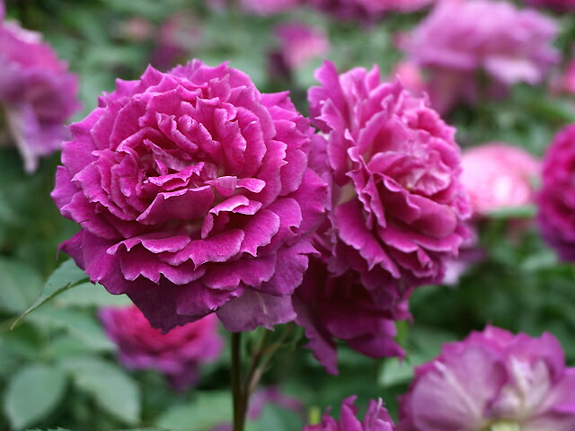 | 紫がかったローズピンク・中輪咲き(8cm位)・波状弁咲き |