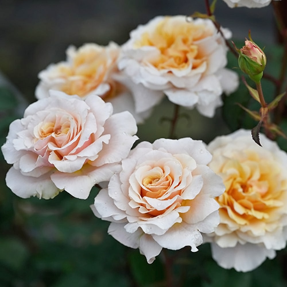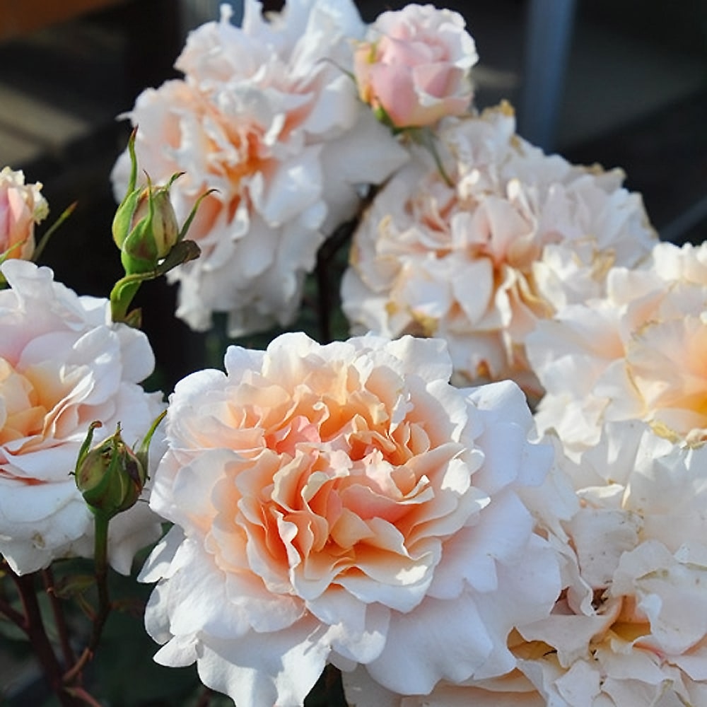 アプリコットの切れ込み弁のおおらかで存在感のある花を咲かせます。ティにミルラとパウダーのやすらぐ良い香り。夏場は、小さめの可愛らしい花になり、丸弁咲きで咲くこともあります。四季咲き性があり年間を通しての花色の変化は、少なく安定しているため、切り花にも最適です。