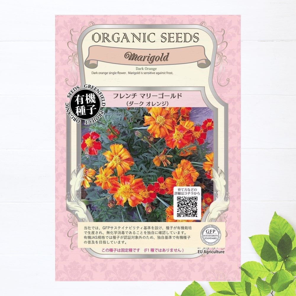 一重咲きのフレンチマリーゴールドです。土中の線虫を殺すとされ、野菜栽培のコンパニオンプランツとしても利用できます。一重咲きの濃いオレンジ色の花を、夏季の間長く楽しめます。