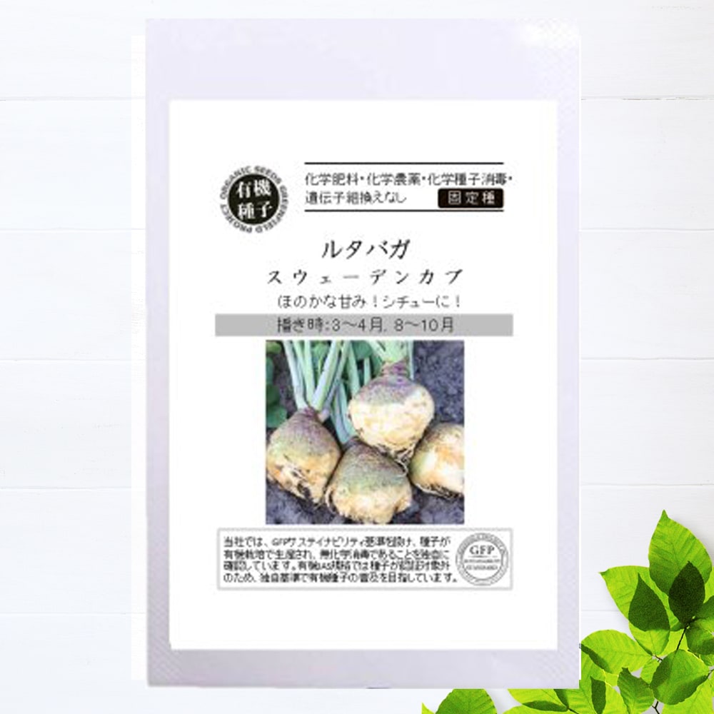 「ルタバガ」はカブによく似た形をしていますが、分類的には菜花の変種とされています。非常に貯蔵性が高く、ヨーロッパではイモ類や穀物類が尽きた時に推奨される凶荒作物だったようです。日本でも明治時代に北海道に導入されましたが、日本人の口には合わなかったのかあまり広まりませんでした。肉質は大根よりもずっと固くしまっており、どこを切っても黄色です。根を切ると独特の甘い香りがあり、この香りが好みを左右させる要因だとされています。日本では栽培されても飼料用という扱いで、とても珍しい品種。強健で育てやすい品種ですので、話の種に一度育ててみるのも面白いかもしれません。