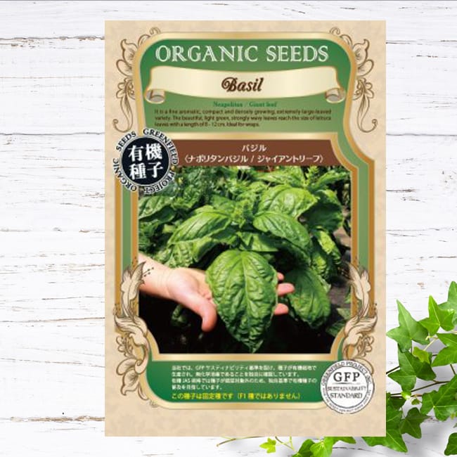 「ナポリタンバジル」は別名、ジャイアントリーフとも呼ばれ、10cm以上にもなる大きな葉をつけることが特徴です。イタリア料理との相性も抜群な香り高いハーブで、コンパクトに密に育ちます。大きな葉なので散らして使うだけではなく食材を包む料理にも最適です。