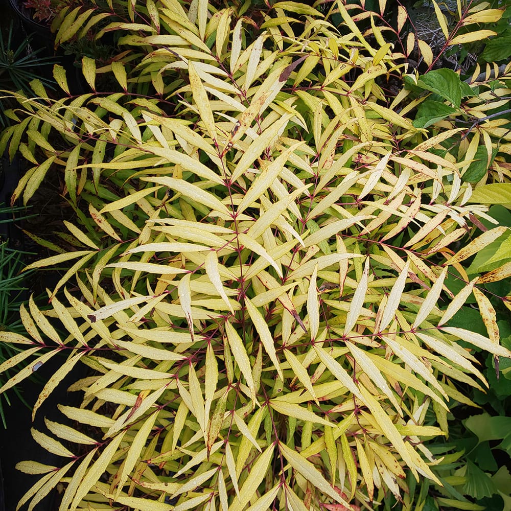 ヒイラギナンテン黄雲(こううん)は、ヒイラギナンテン業平(なりひら)の和名でも知られるマホニア コンフューサのたいへんレアで魅惑的な黄金葉品種です。