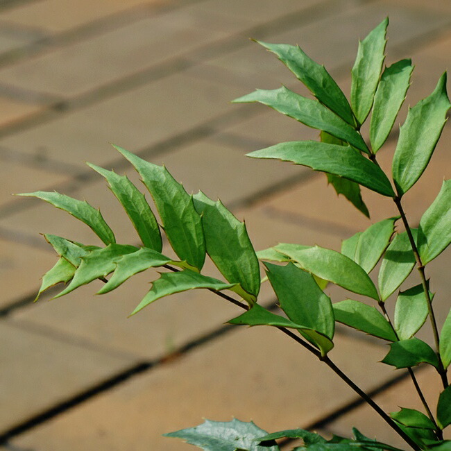 ヒイラギナンテンの和名は葉がナンテンのように複葉で、ヒイラギのようにとげのあることや、果実のつき方がナンテンに似ることに由来しており、実際の属名とは異なります。