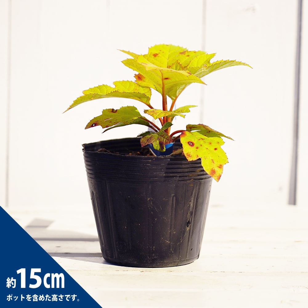 カシワバアジサイ 黄金葉(おうごんば)は、花を楽しむだけでなく、葉も楽しめる品種として人気です。品種名はリトルハニーです。