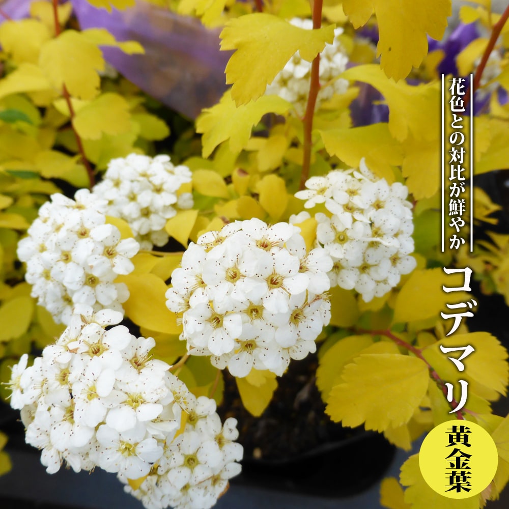 コデマリは病害虫に強く、あまり手間のかからない植物です。ホワイトガーデンに欠かせない豪華な白い花を咲かせます。自然樹形で大株に育てると見事です。枝がしなやかなのが特徴で、垂れ下がるように咲くのがオシャレです!秋はオレンジ色に紅葉します。