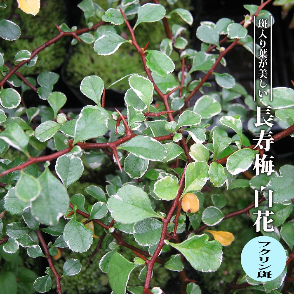 長寿梅は野ボケの一種で枝には鋭いトゲがあります。木瓜(ボケ)に比べ太りは遅いですが、芽吹きがよく、剪定を繰り返すとふわっと柔らかい株立ちに仕立てられます。生長が遅いのと、名前の縁起の良さから敬老の日のギフトに人気があります。