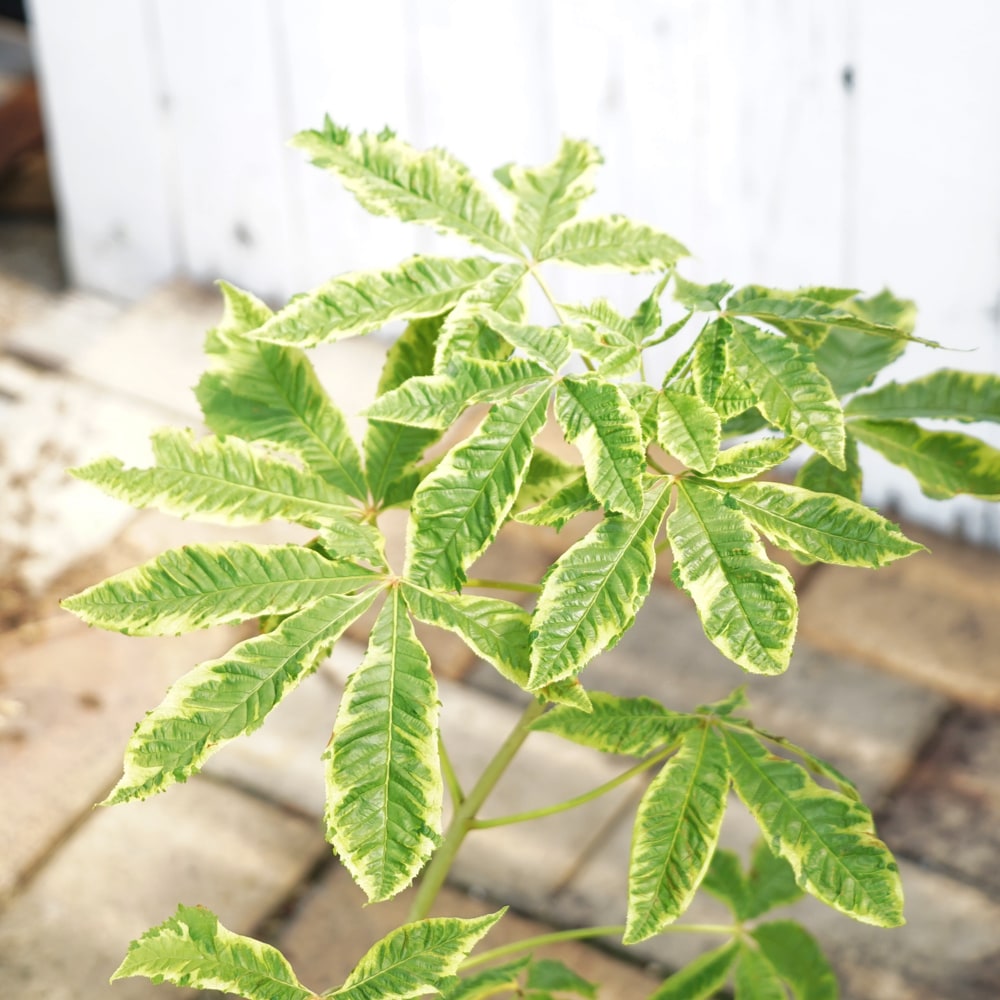 斑入りトチノキは、夏の直射日光で葉が傷み葉焼けを起こすことがあります。美しい葉を保つために、夏場は半日陰での管理をおすすめします。