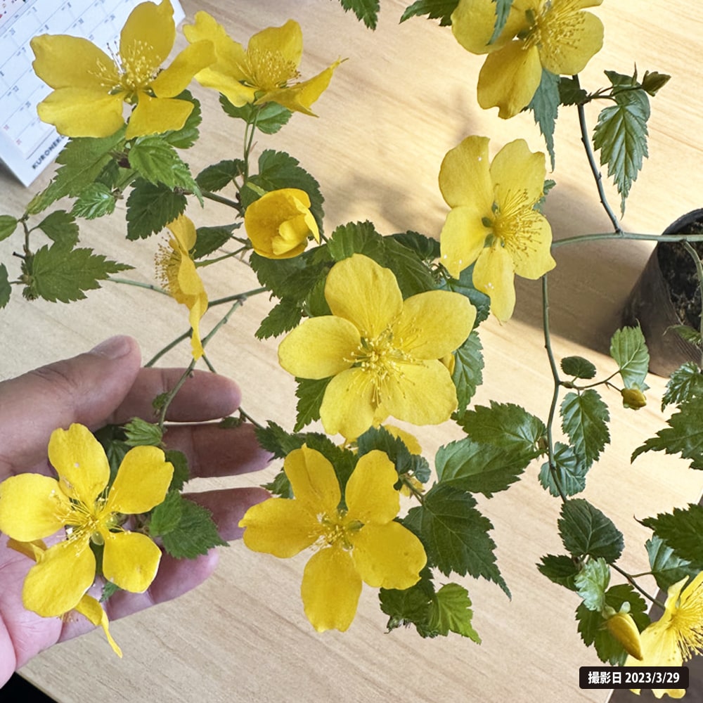 慌てて生産者さんに問い合わせたところ、ヤマブキの八重咲きは稀に先に咲くと一重が咲いてしまい、その後、約1ヶ月後に八重が咲くとのことでした。もともと、ヤマブキの八重咲きは咲くのはちょっと遅いです。