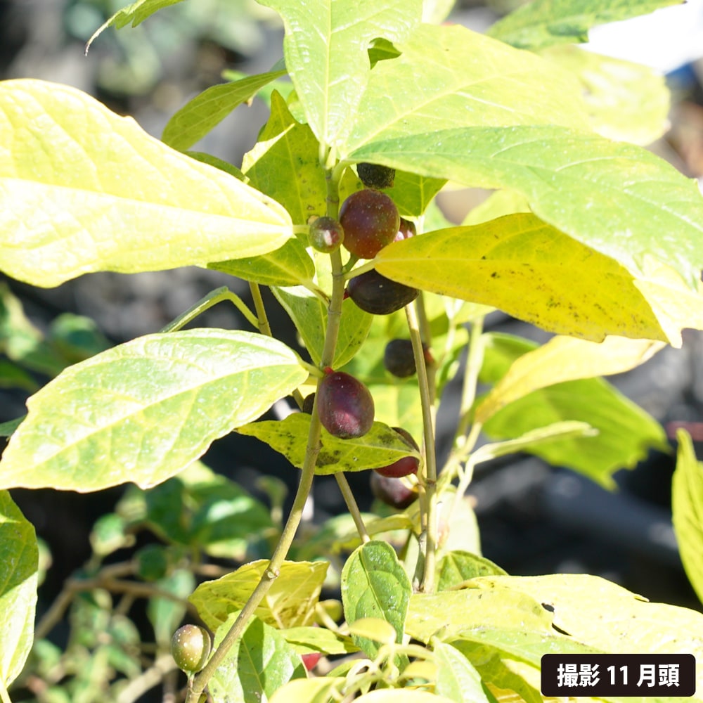イヌビワは関東以西本州、四国、九州、沖縄にかけて分布する落葉低木樹です。名前に「ビワ」とついていますが、実際には「いちじく」の仲間で、果実のつき方や見た目も、イチジクに似ています。果実は熟すと黒紫色になり、そのまま食べることもできますが、あまりおいしくありません。そのため、観賞用として小さな果実を楽しんでいただくことをおすすめします。また、イヌビワコバチと共生関係にあり、受粉の手助けをしてくれるため、イヌビワコバチがいない環境では実がつきません。(雌雄異株です)