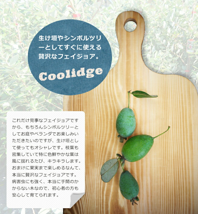 花付き、実付きの良い極早生品種。コンパクトな樹形でフェイジョアの中でも最も早く結実する一才性品種です。