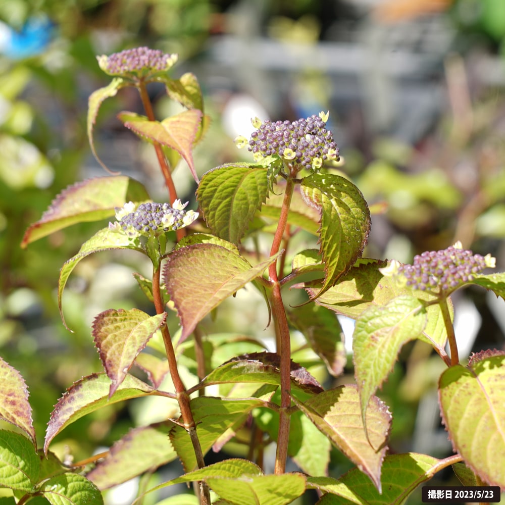 ヤマアジサイは本州では関東より西、また四国、九州などの山地にみられます。湿り気のある山地などに生育しているため、半日陰の環境を好みます。日当たりの良すぎる場所は避けてください。ガクアジサイよりも葉が細く、産毛があり、薄く、光沢がありません。別名”サワアジサイ”とも言います。ヤマアジサイは西洋アジサイに比べ生育が比較的遅いことから、病気と思われがちですが、この品種の性質からくるものです。