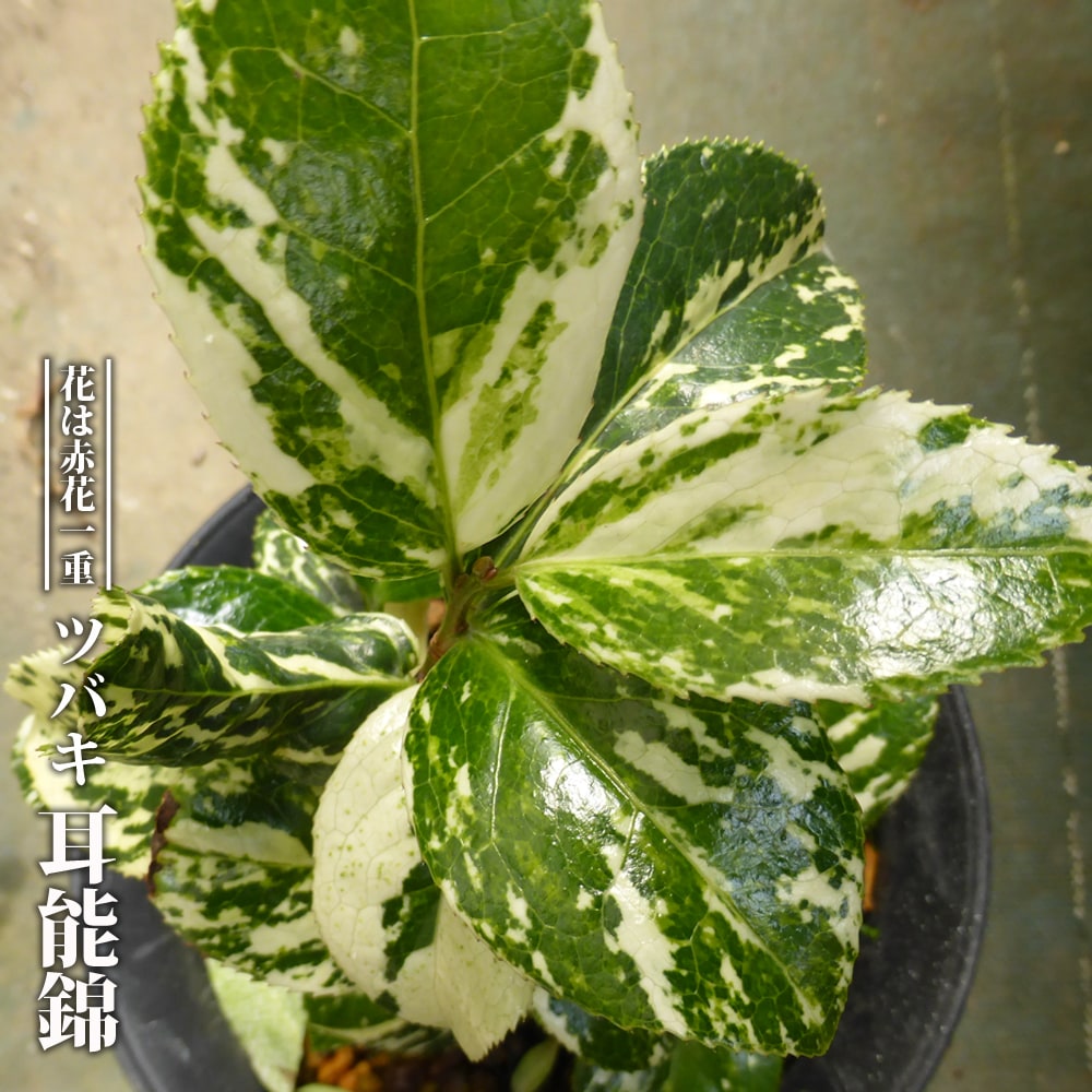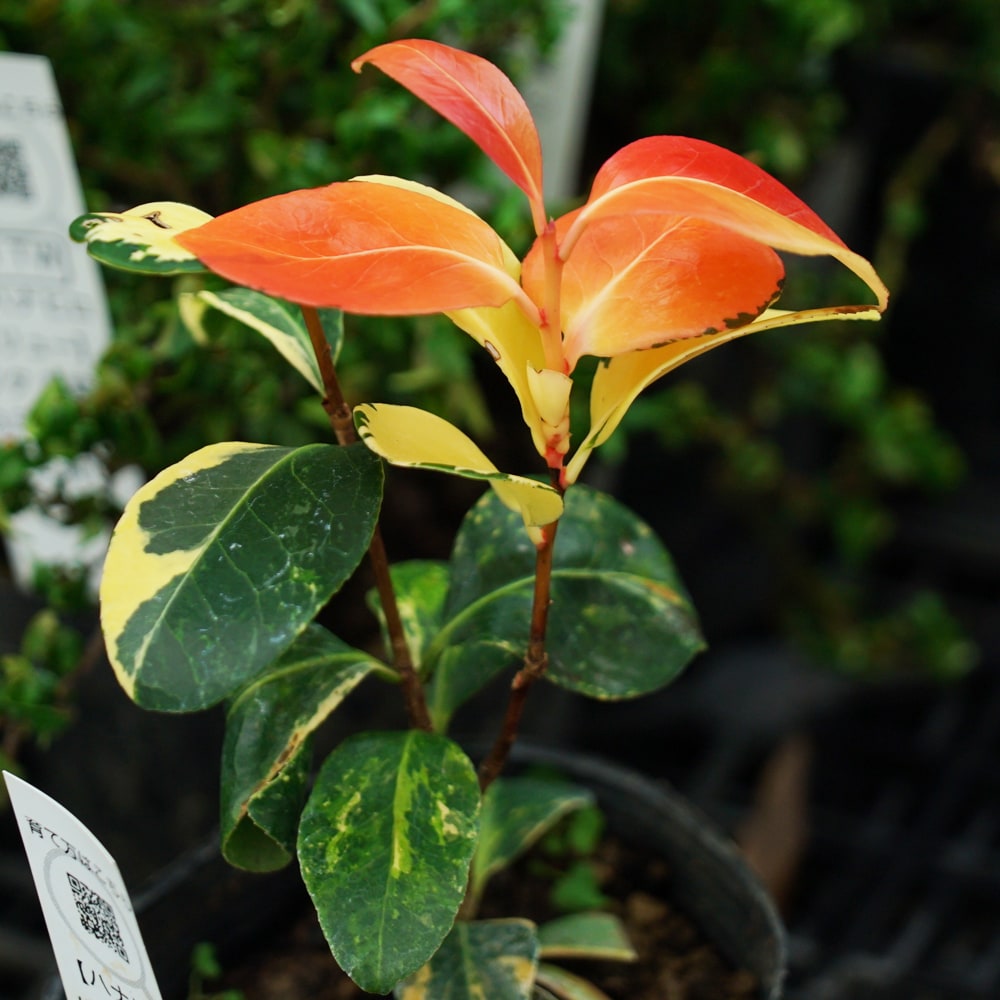 花のない時期にも美しい葉芸が楽しめる「耳納錦」。新芽が赤・白・桃に色づき趣深い椿です。