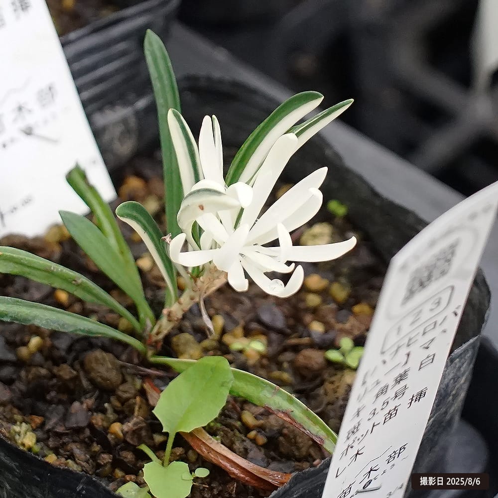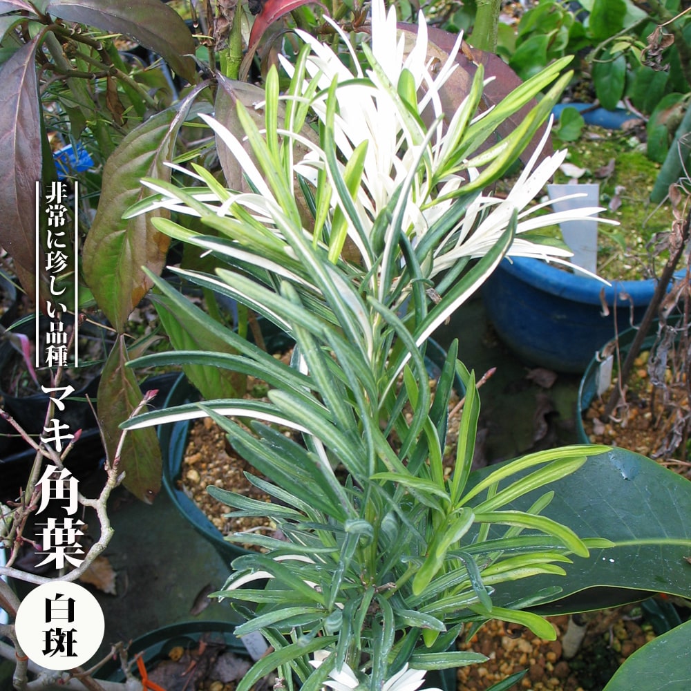角葉の槇(槙・マキ)に白斑が入る非常に珍しい品種です。斑の入り方には個体差があります。