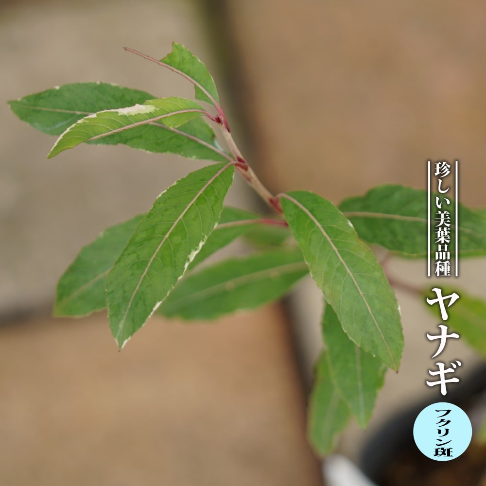 葉の周りに白黄色のフクリン斑が入る明るい雰囲気のヤナギです。風にそよぐ斑入りの葉はきっと涼しげな雰囲気を演出してくれるでしょう。