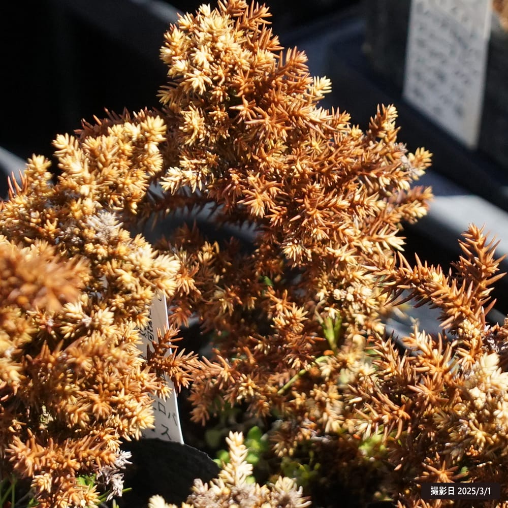 冬から早春は寒さによって葉が紅葉します。オレンジ色になり、春の温度が上がってくると緑に戻っていきます。