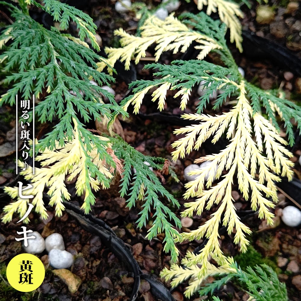 ヒノキ「黄斑」は、葉に美しい黄斑が入る珍しい品種です。