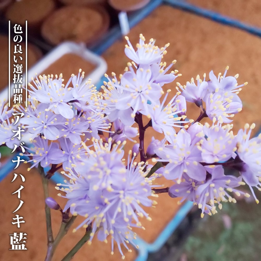 アオバナハイノキ「藍」は、より華やかで美し青花を咲かせる選抜品種です。青というより淡い紫色に近いです。樹全体に咲かせる姿は見事です。