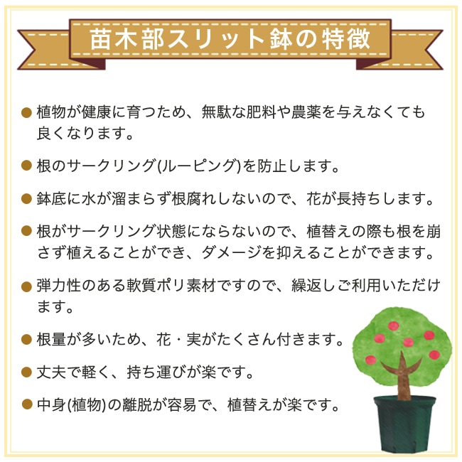 根が生長を止め、それ以上大きくなることにエネルギーを使わなくなるので、植物は花を咲かせ実を付けることにエネルギーを使います。また、根が休んでいる状態なので、数年後の植替え時のダメージも抑えることができます。