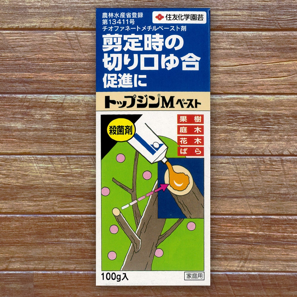 ペースト状の殺菌剤です。剪定・整枝時の切り口、胴枯病などの病患部を削り取った後の傷口に塗ることにより、病原菌の侵入を防ぎ、枯れ込みを防止し、切り口の回復を早めます。