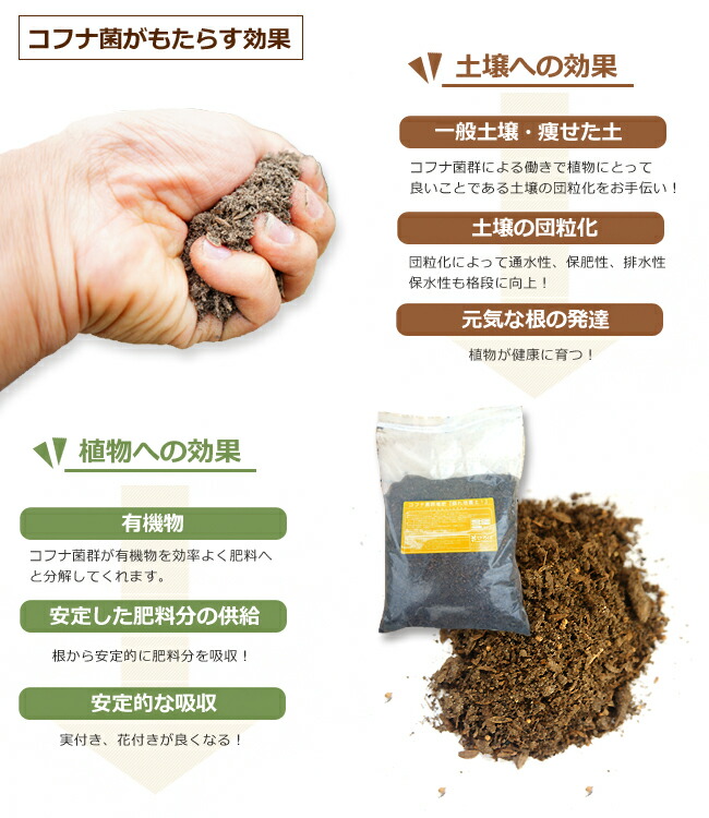 しかし、この有用微生物菌入培養土なら、そんな固くて古くなった土と混ぜて使うだけで、再び輝きと力を取り戻し、再び植物にとって健やかな成長が期待できる土壌改良が実現します!
